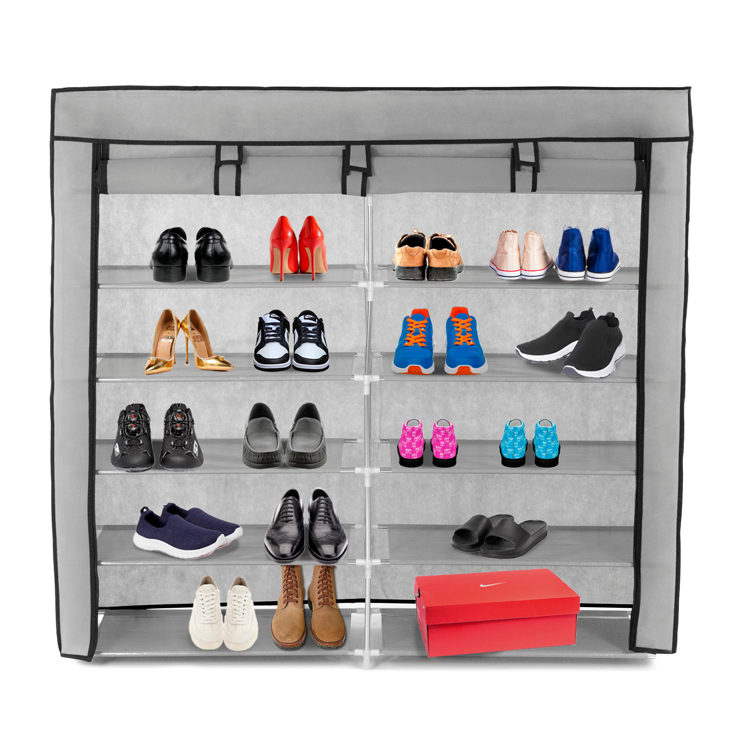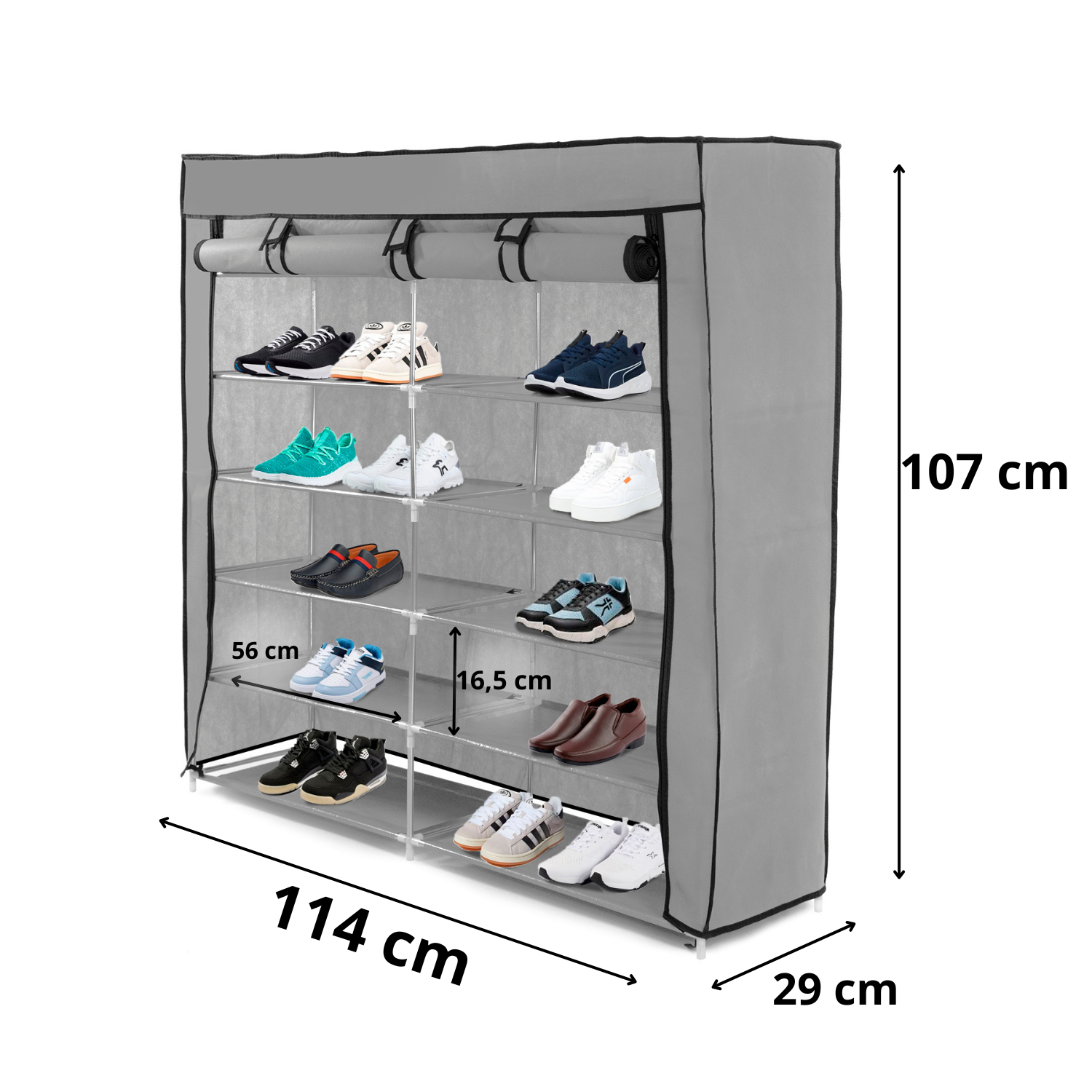 ✨SZAFA TEKSTYLNA NA OBUWIE 6 POZIOMÓW POJEMNA REGAŁ METALOWY STELAŻ SZARA✨