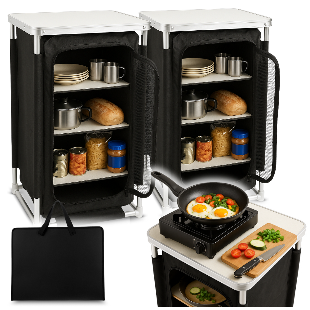 ⛺️ 2 X SZAFKA TURYSTYCZNA KEMPINGOWA SKŁADANA 3 PÓŁKI + BLAT ⛺️