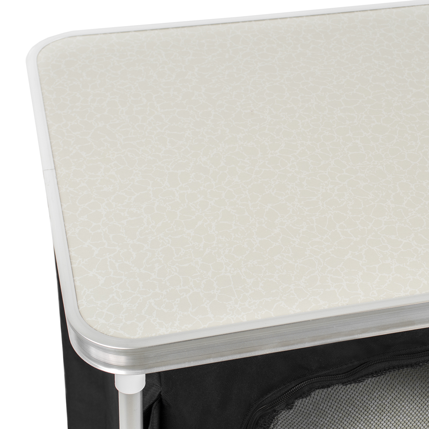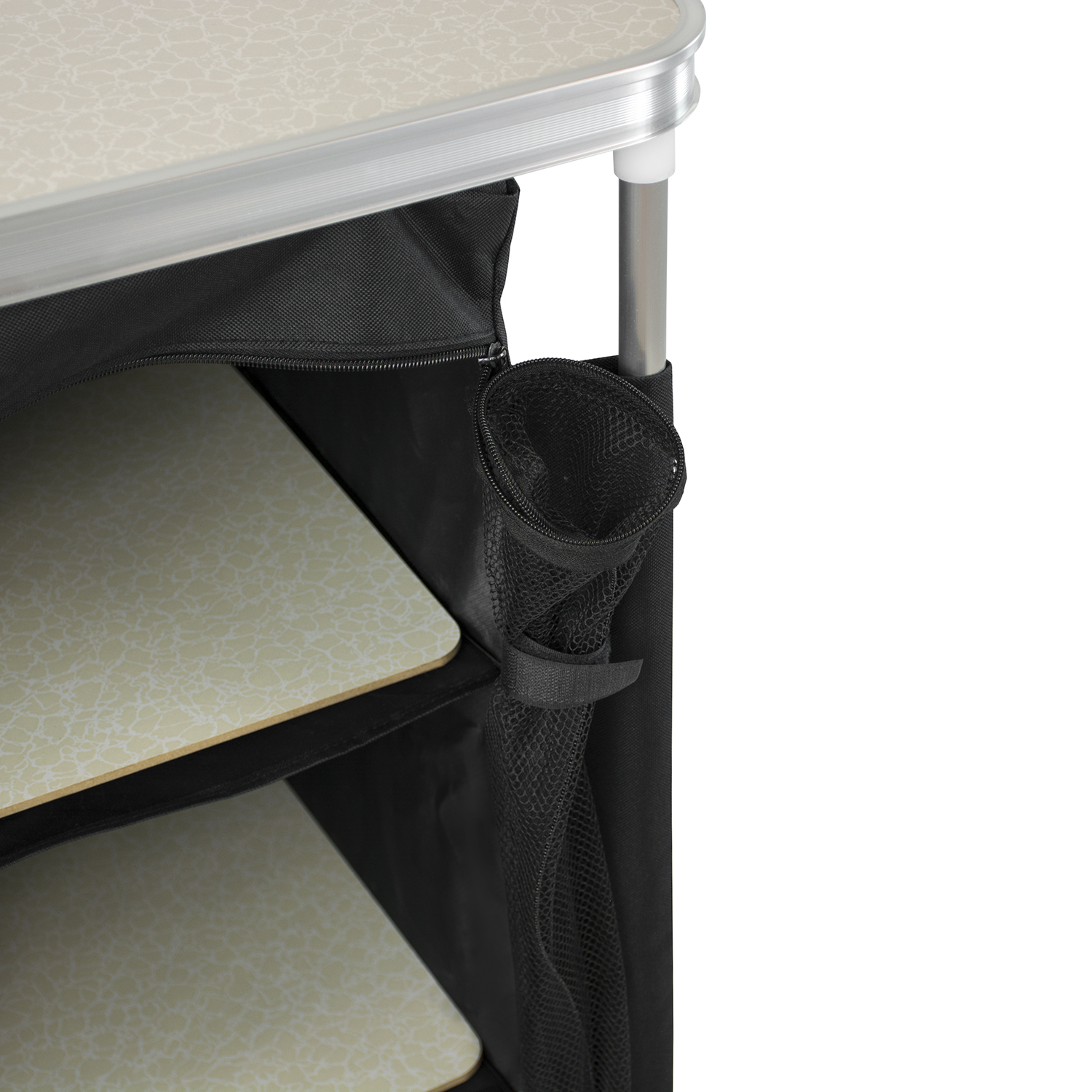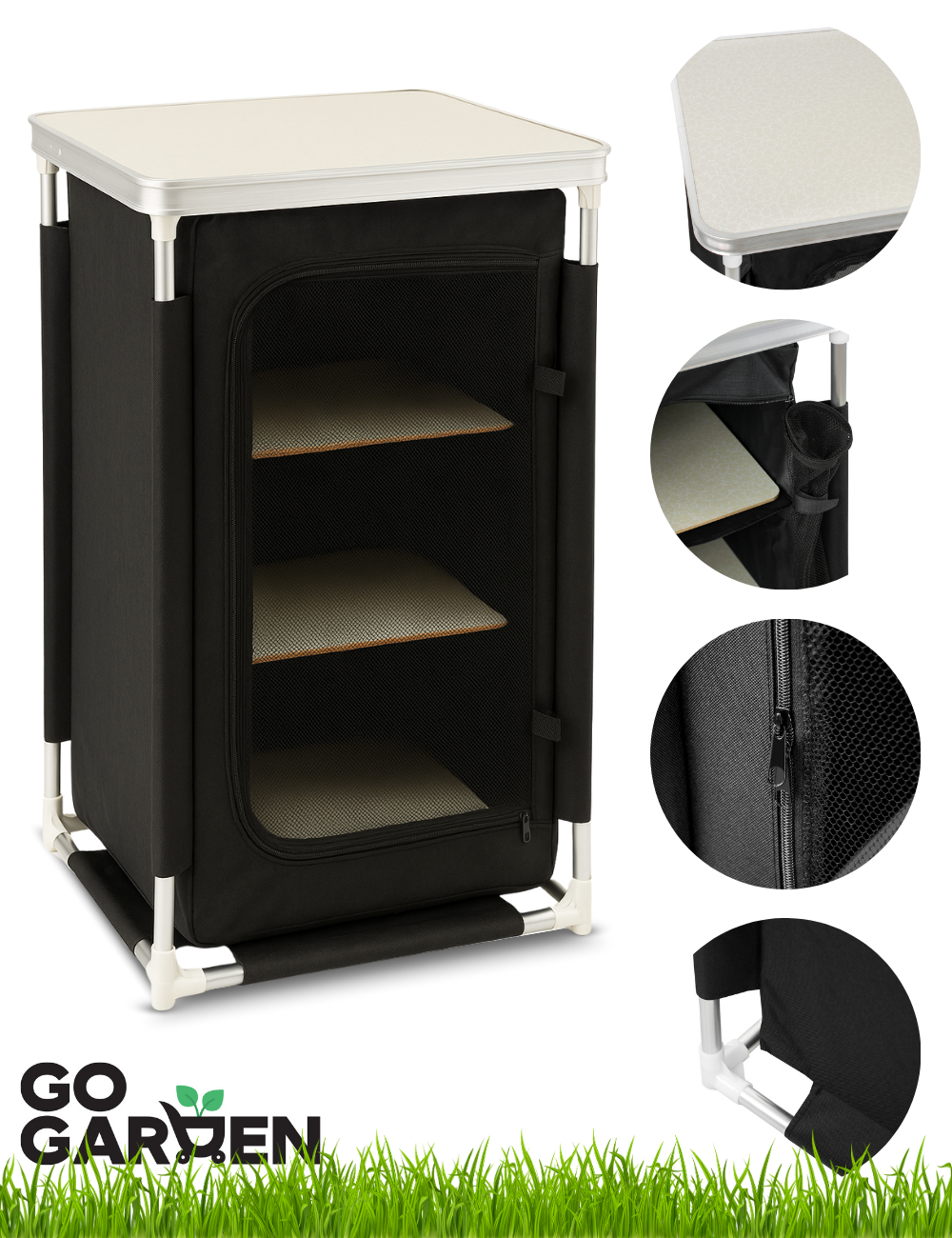 Dzięki kompaktowym wymiarom 55 x 45 x 86 cm, szafka nie zajmuje dużo miejsca, a jednocześnie oferuje świetną przestrzeń do przechowywania. Siatkowane drzwiczki na zamek błyskawiczny nie tylko chronią zawartość przed owadami, ale też umożliwiają cyrkulację powietrza – idealne, gdy przechowujesz np. żywność.