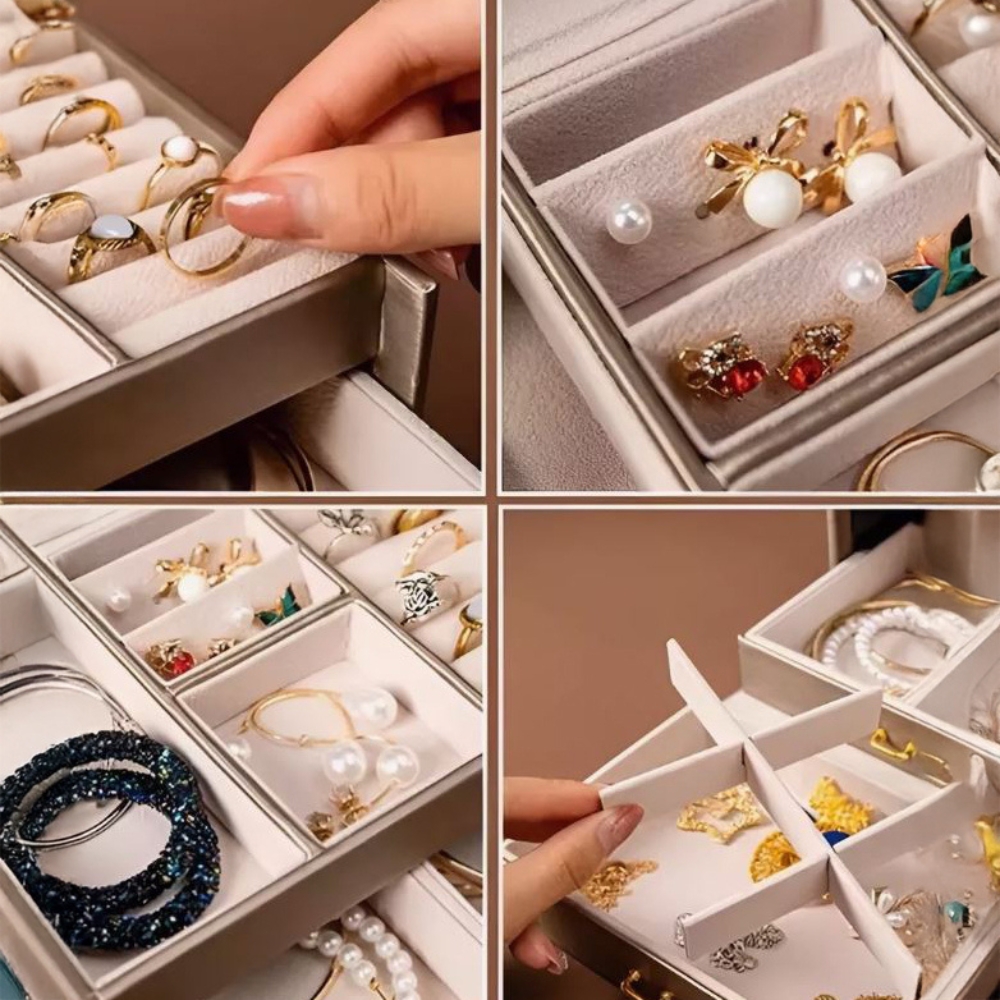 ⭐ Elegancki kuferek na biżuterię pomoże Ci w uporządkowaniu i zabezpieczeniu przed zniszczeniem wszystkich Twoich pierścionków, kolczyków, naszyjników czy zegarków.