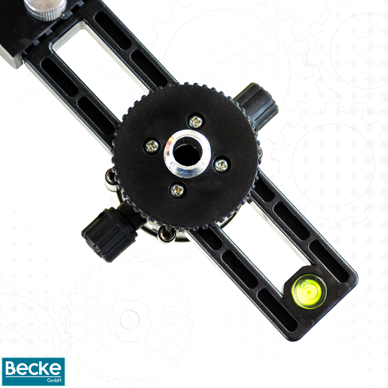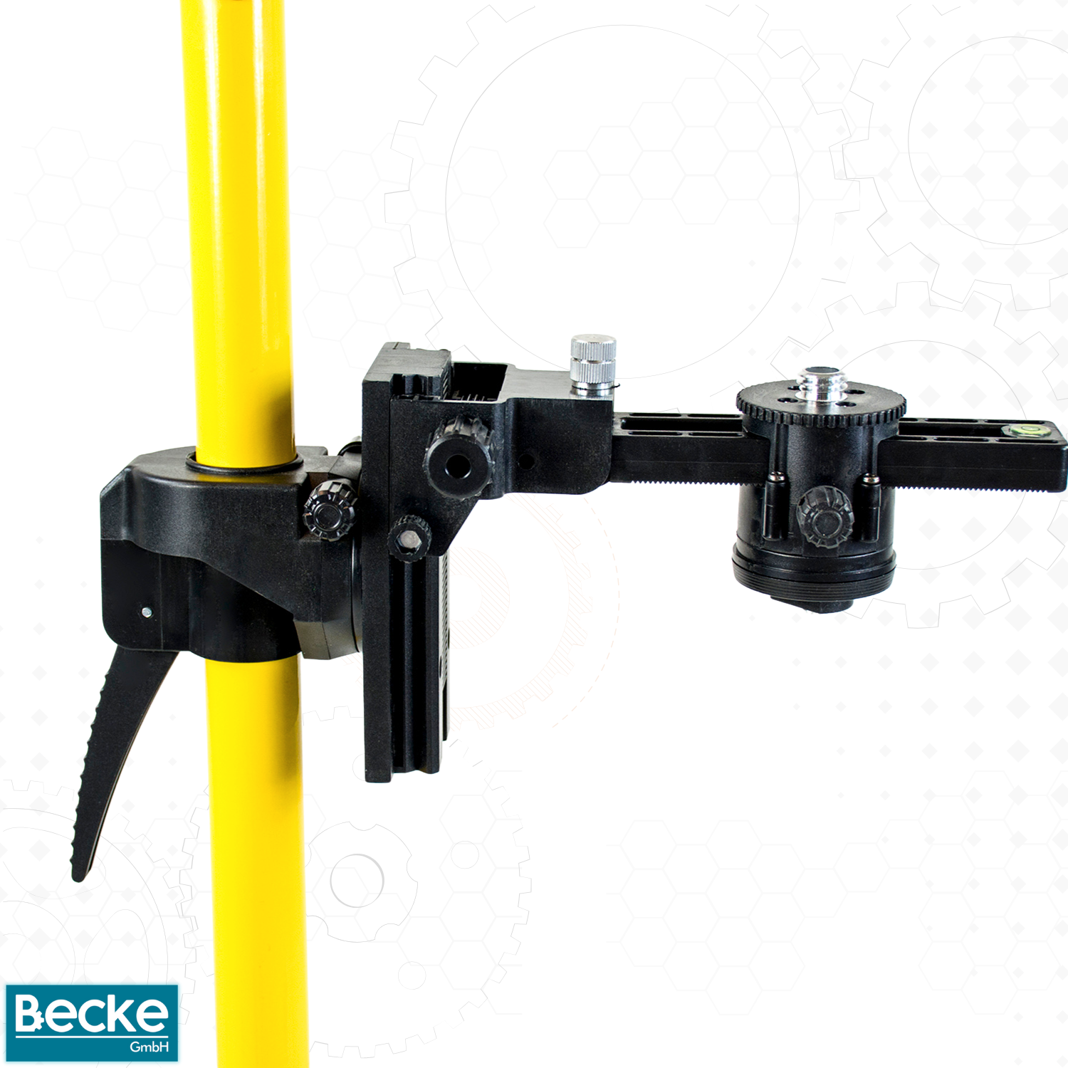Do zestawu dołączona jest regulowana platforma montażowa z gwintem 5/8", co sprawia, że pasuje do większości laserów dostępnych na rynku. Wbudowana libella umożliwia błyskawiczne wypoziomowanie, a obrotowa głowica 360° pozwala na ustawienie promienia lasera w dowolnym kierunku.
