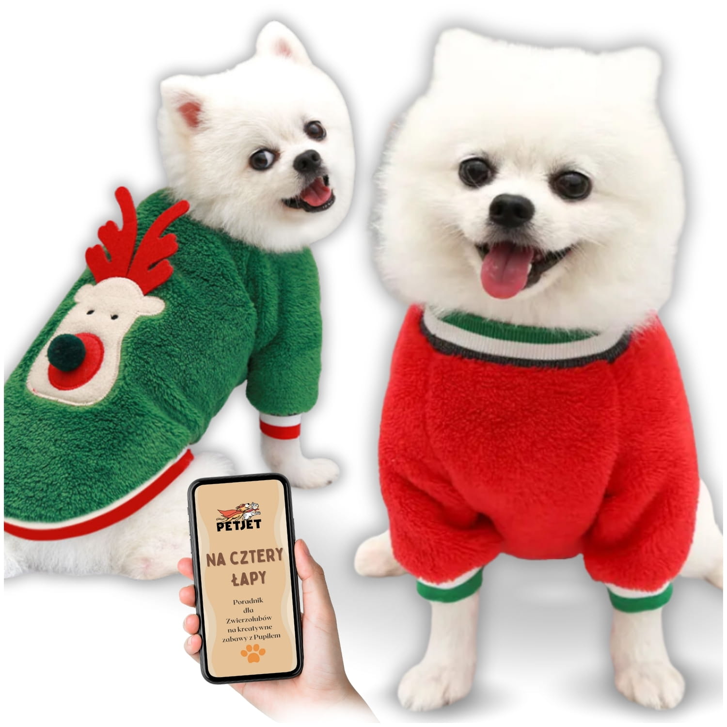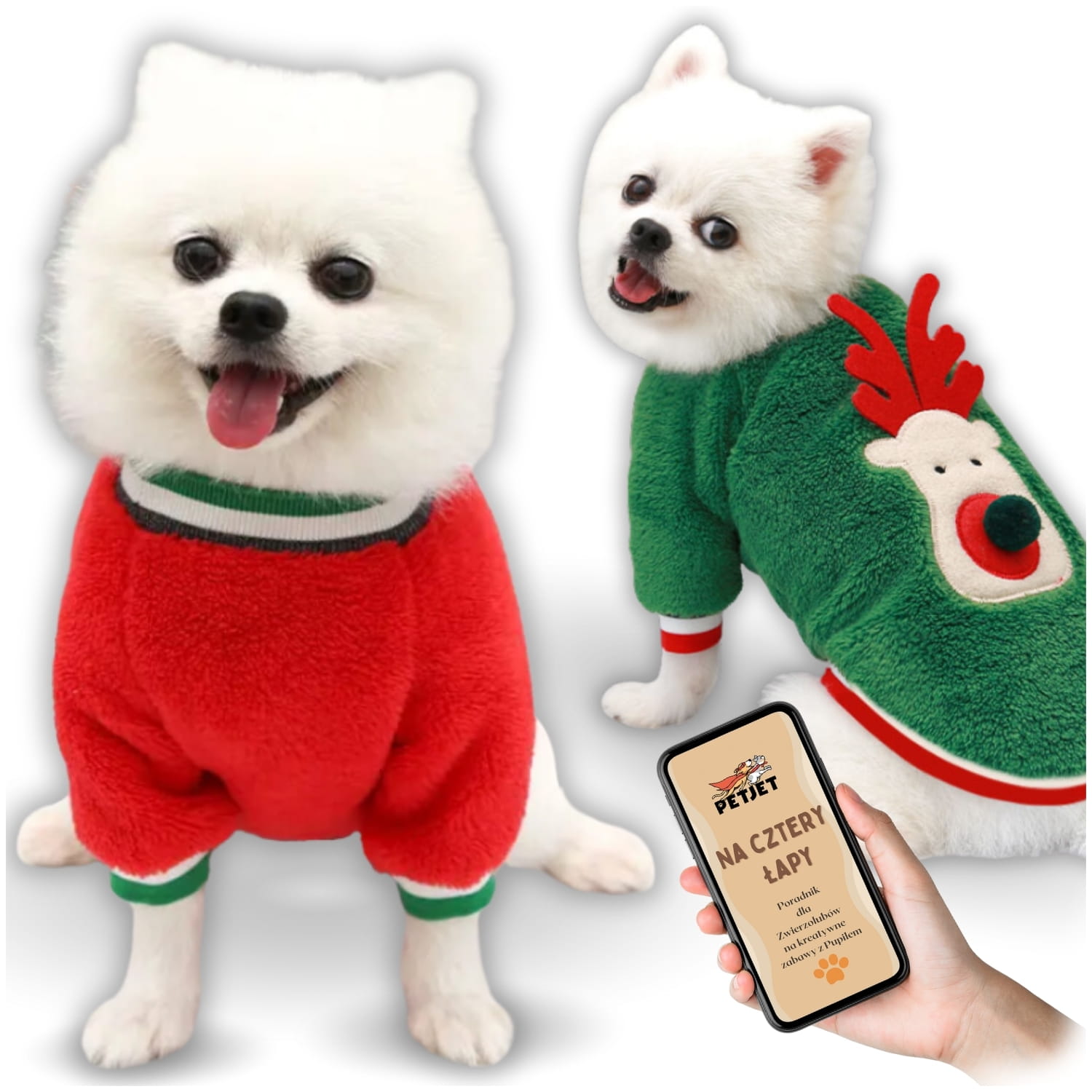 ⭐ CIEPŁE UBRANKO DLA PSA KOTA ZIMOWE ŚWIĄTECZNE CZERWONE ZIELONE SŁODKIE RENIFER ROZMIAR L