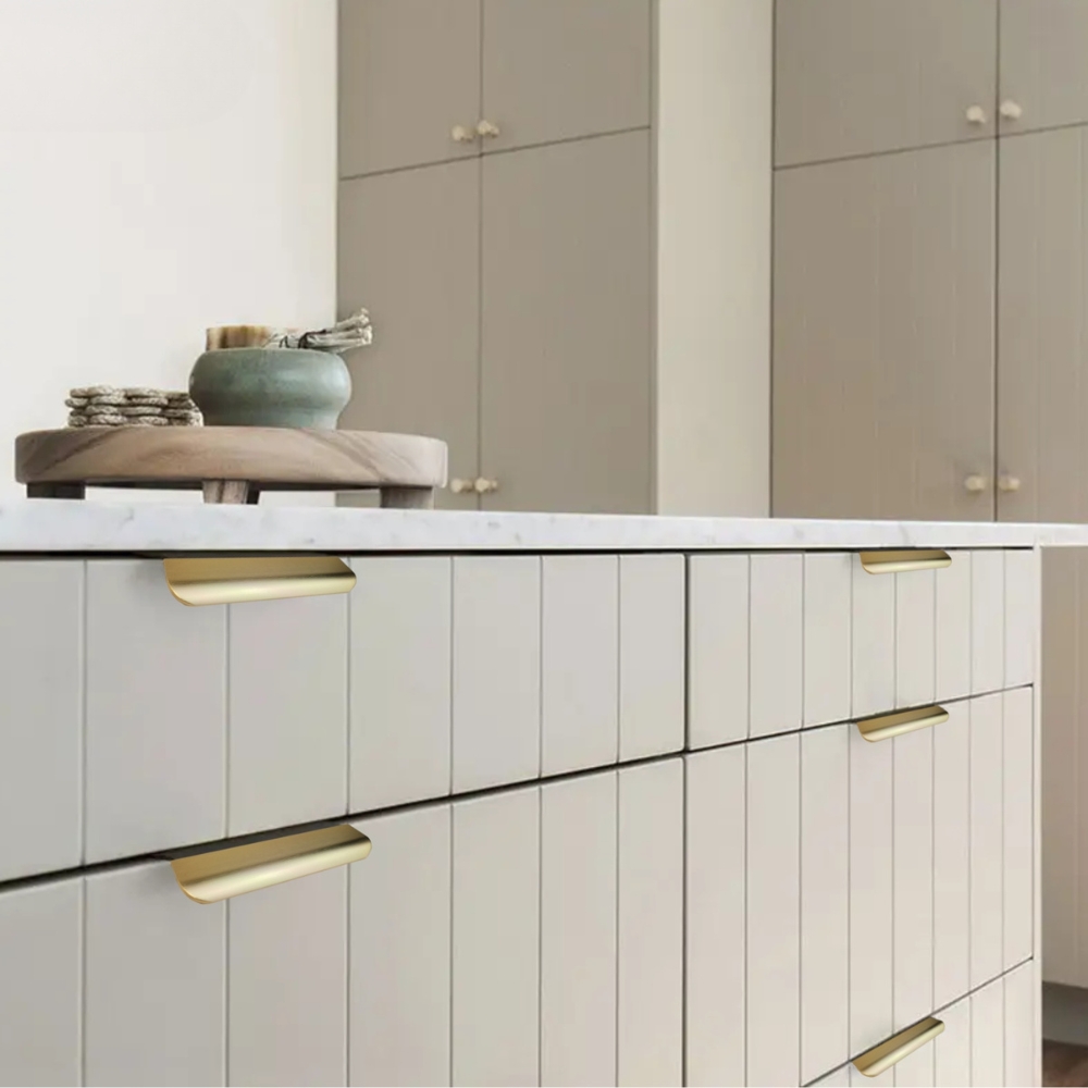 Złoty uchwyt meblowy krawędziowy ARES to prawdziwe dzieło sztuki, które doda Twoim meblom nowego życia. Niezależnie od tego, czy chcesz subtelnie odświeżyć wystrój kuchni, salonu, czy sypialni – ten model sprawdzi się doskonale. Jego elegancki, szczotkowany złoty kolor wprowadza luksusowy charakter, który idealnie komponuje się zarówno z klasycznymi, jak i nowoczesnymi meblami.