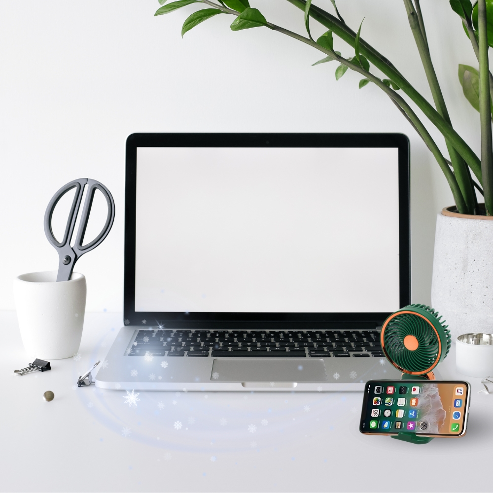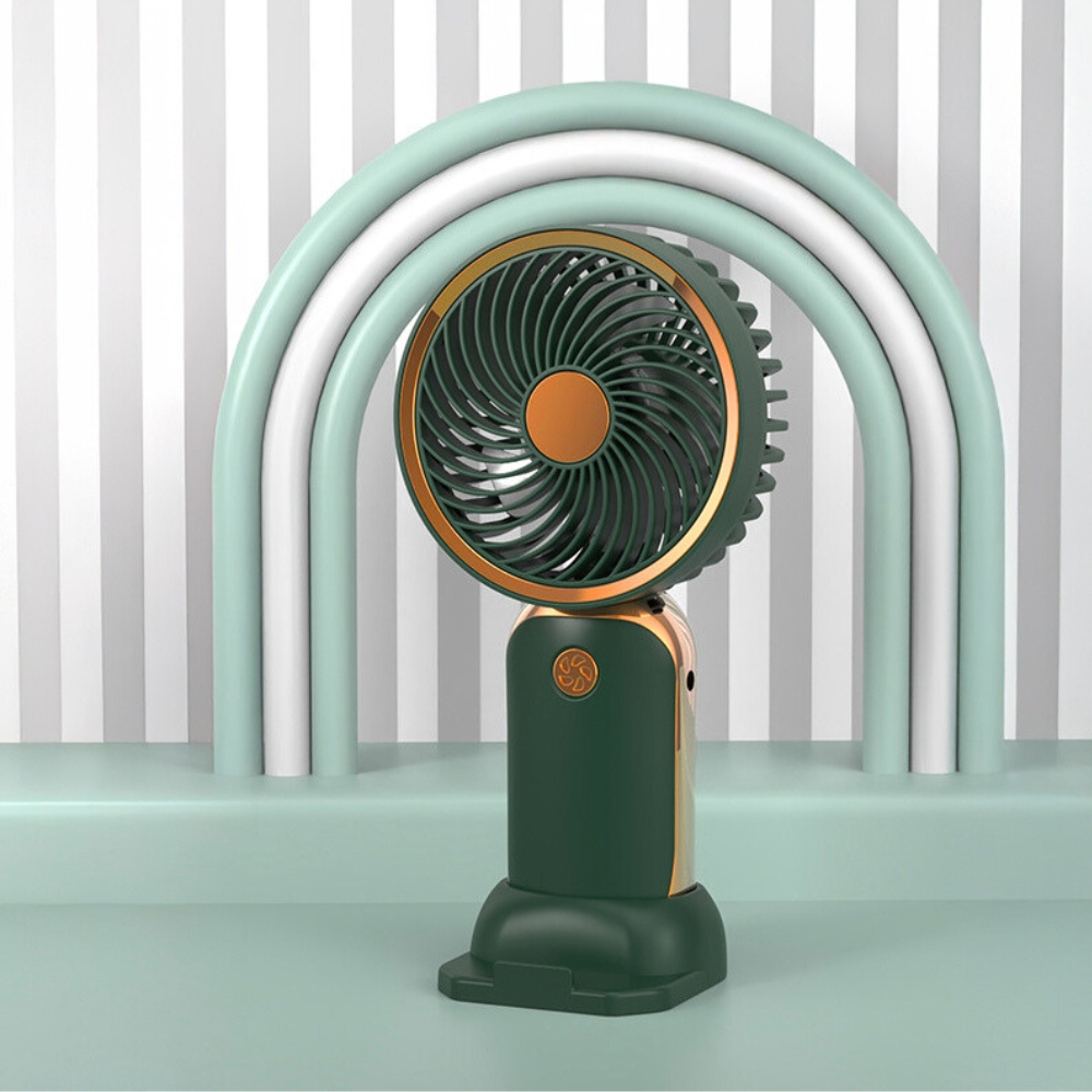 Nasz produkt to nie tylko wentylator, ale wielofunkcyjne urządzenie, które zapewnia komfort i wygodę w codziennym użytkowaniu. Zielony, stylowy design z złotymi elementami sprawia, że jest to nie tylko praktyczny, ale i elegancki dodatek na Twoje biurko. Dzięki cichej pracy, ładowaniu przez USB oraz wbudowanej podstawce na telefon, nasz mini wiatrak spełnia wszelkie oczekiwania nowoczesnego użytkownika.