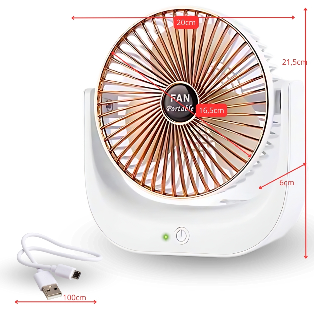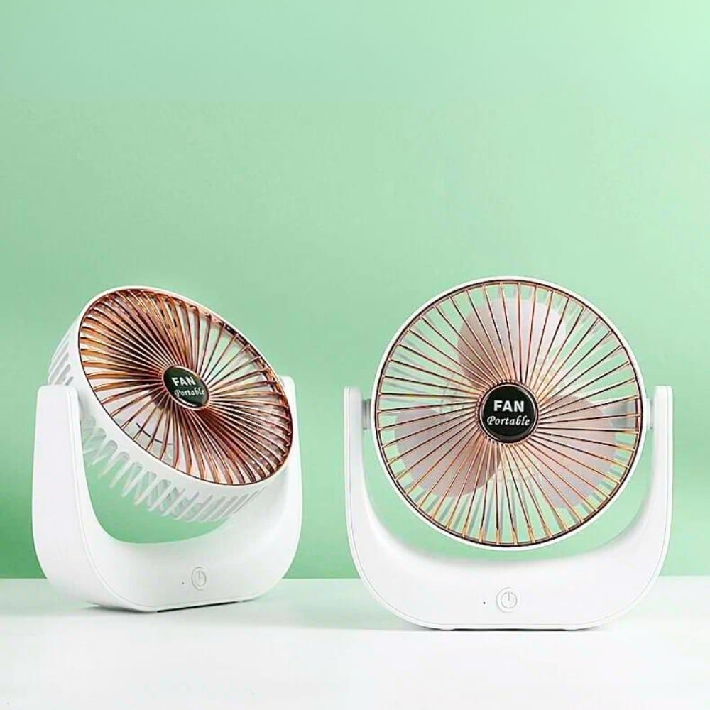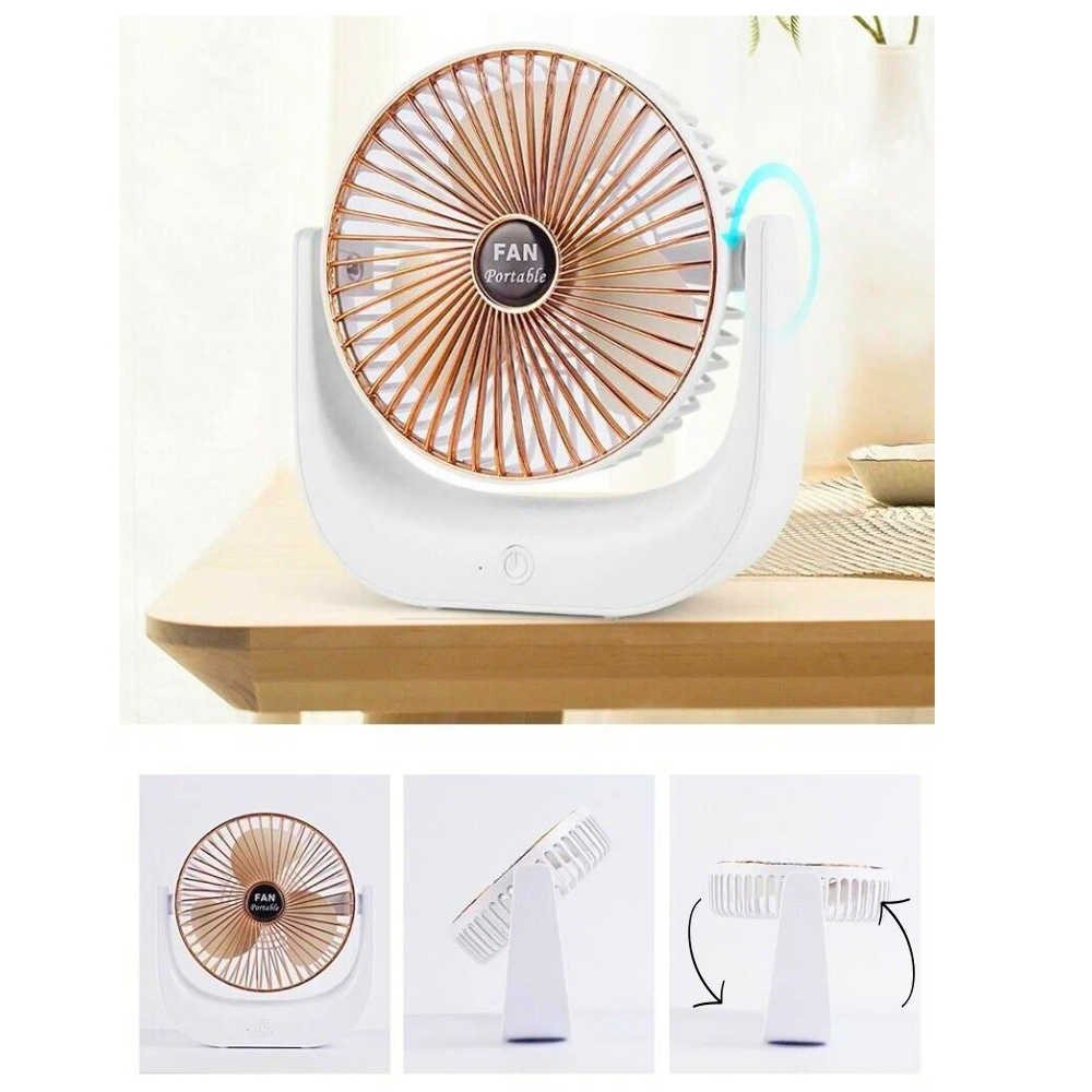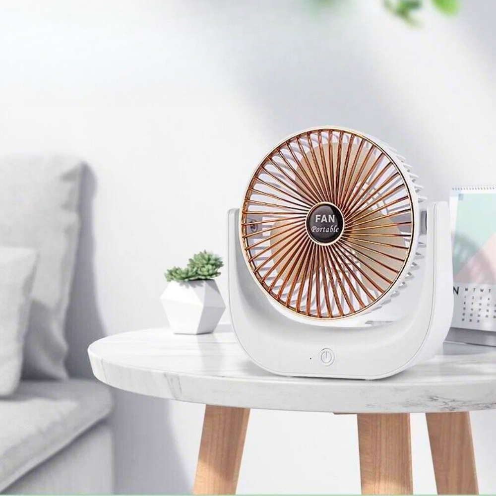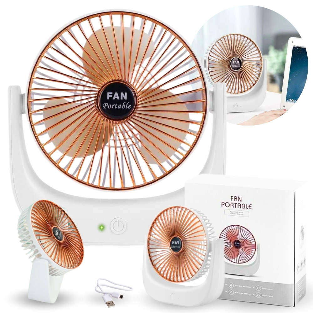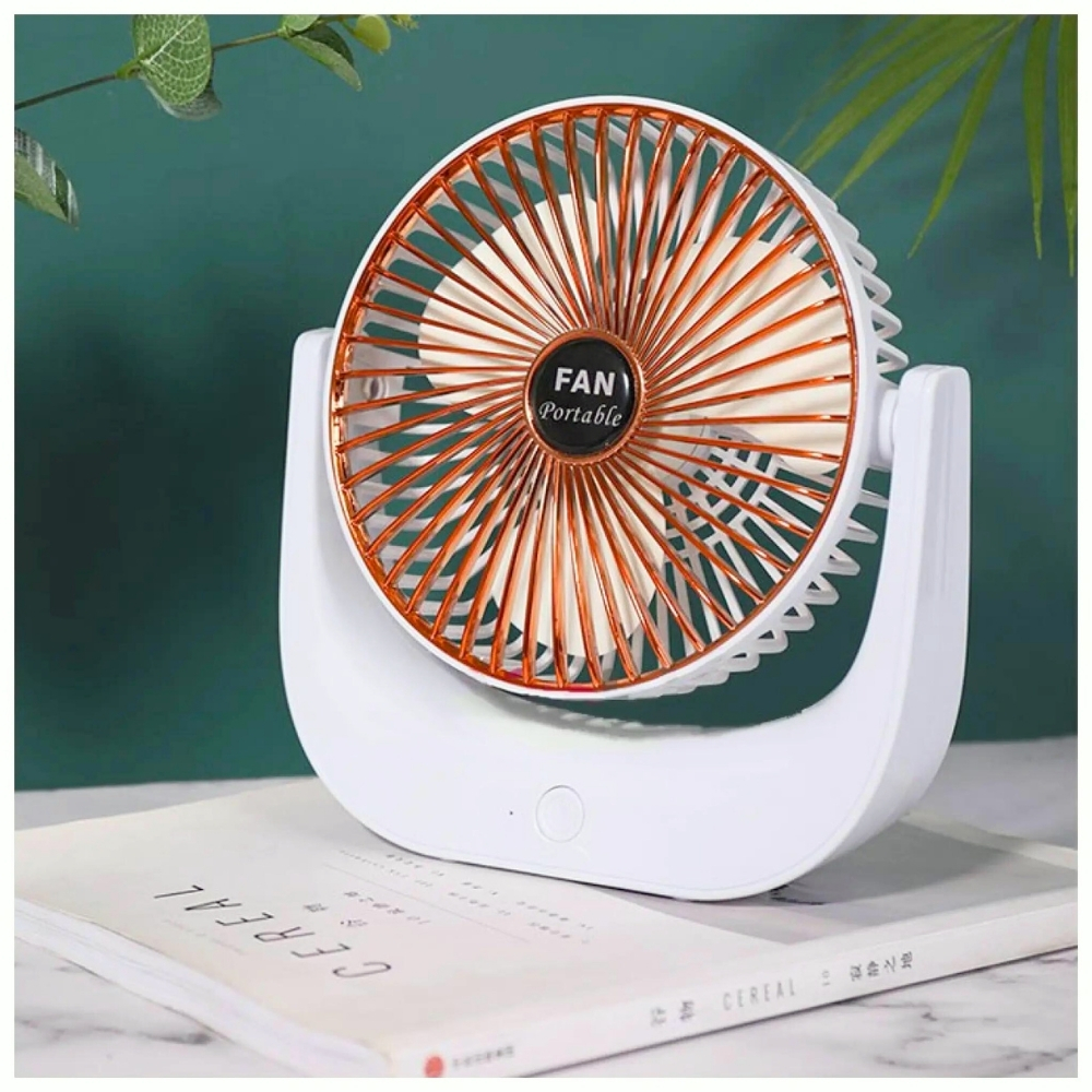 ☀️WENTYLATOR BIURKOWY MINI WIATRAK STOJĄCY PRZENOŚNY ŁADOWANY USB KOLOR MIEDZIANY OBROTOWY 3 POZIOMY REGULACJI NAWIEWU☀️