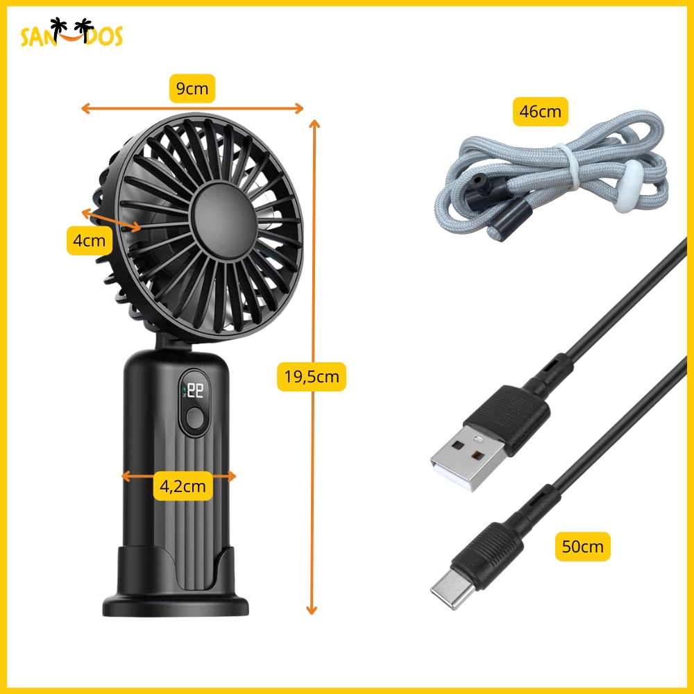 Możesz trzymać go w dłoni i chłodzić się w trakcie spaceru, powiesić na szyi, by cieszyć się rześkim powiewem bez użycia rąk, lub postawić na biurku, by zapewnić sobie komfort w czasie pracy.