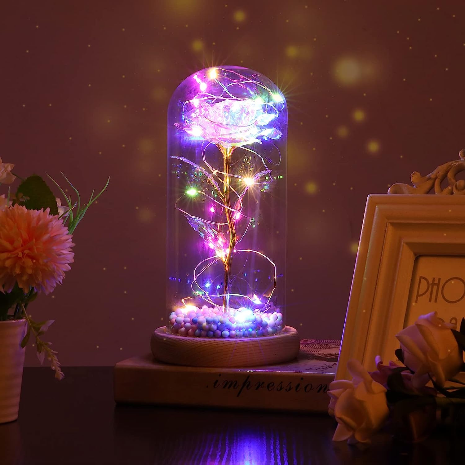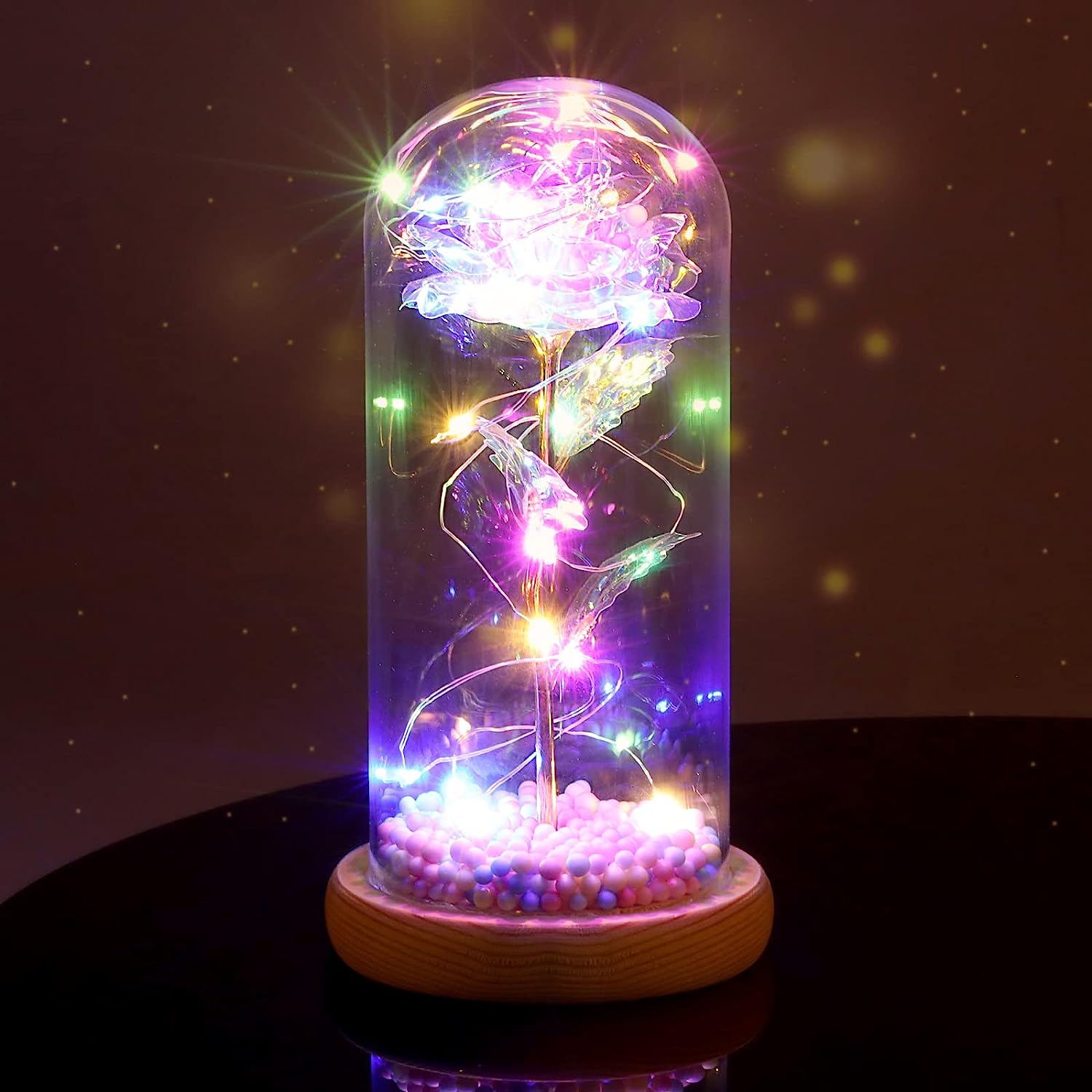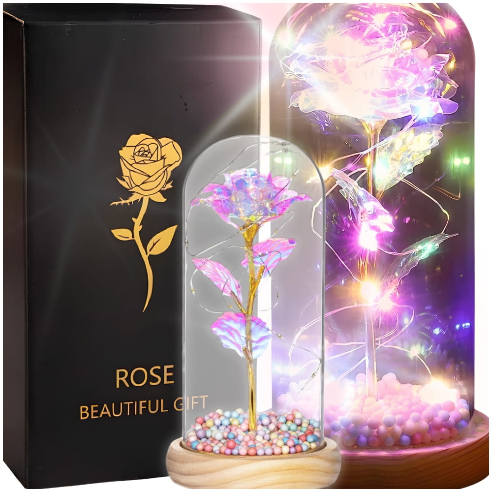 Wieczna róża w szkle LED kolorowa