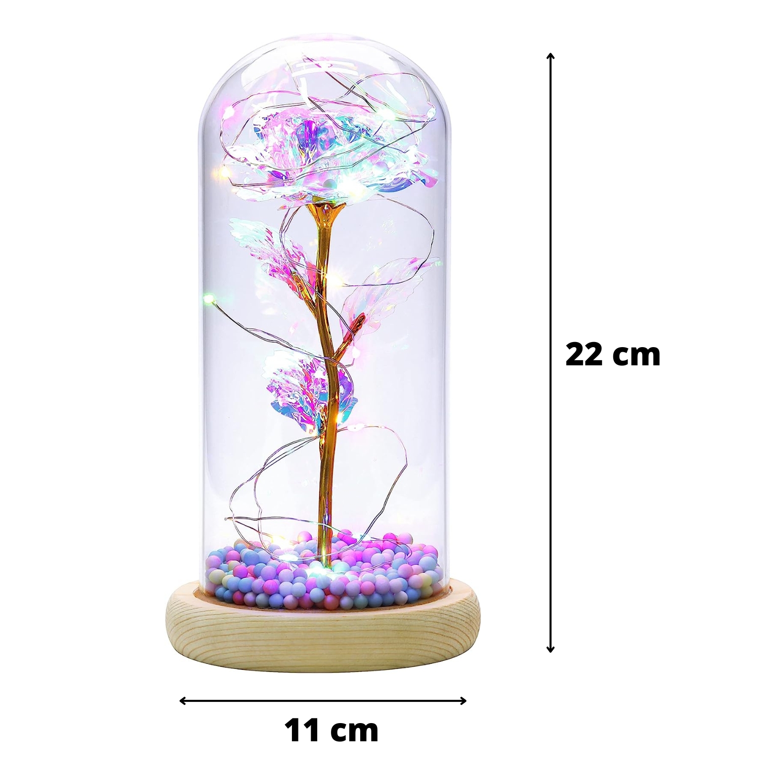 - wysokość róży w kloszu: 22 cm