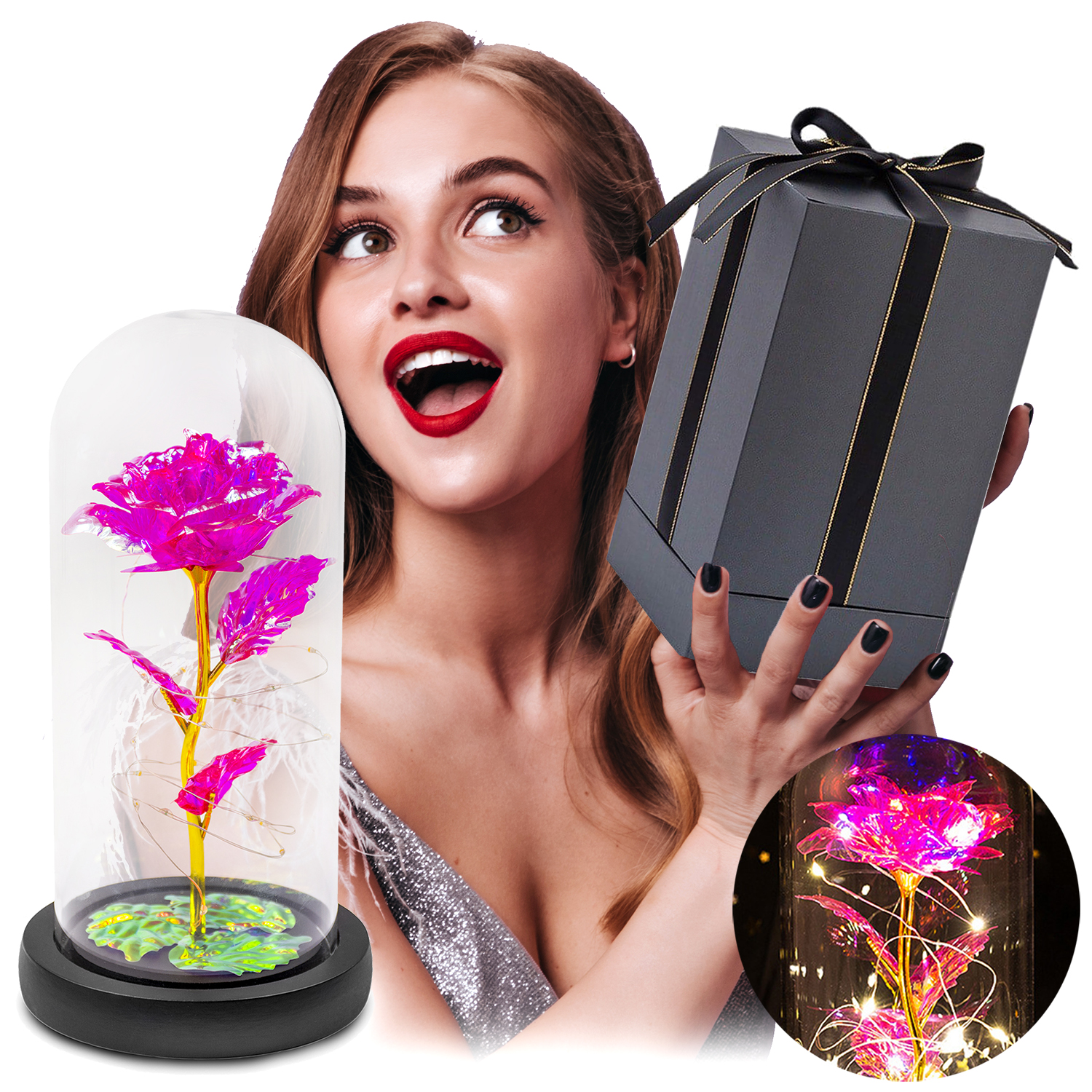 ✨ Kobiety uwielbiają upominki i kwiaty — ta wieczna róża w szkle zamknięta w eleganckim pudełku ozdobnym sprawi Twojej ukochanej lub innej bliskiej Ci osobie wielką radość!