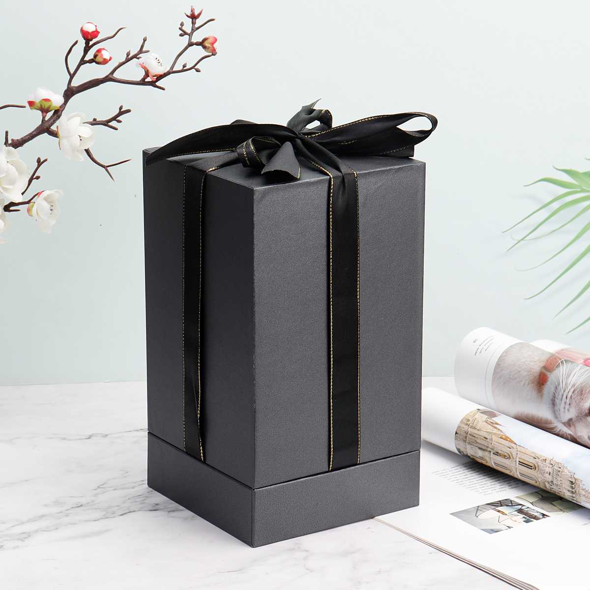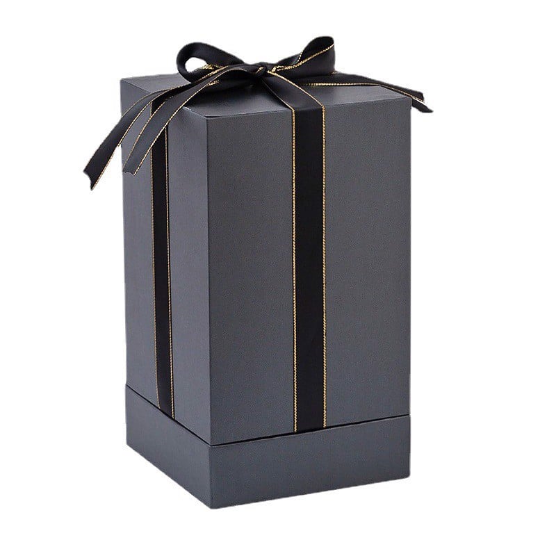 ✨ Eleganckie pudełko prezentowe w kolorze czarnym zostało przewiązane ozdobną wstążką — całość wygląda bardzo ekskluzywnie!