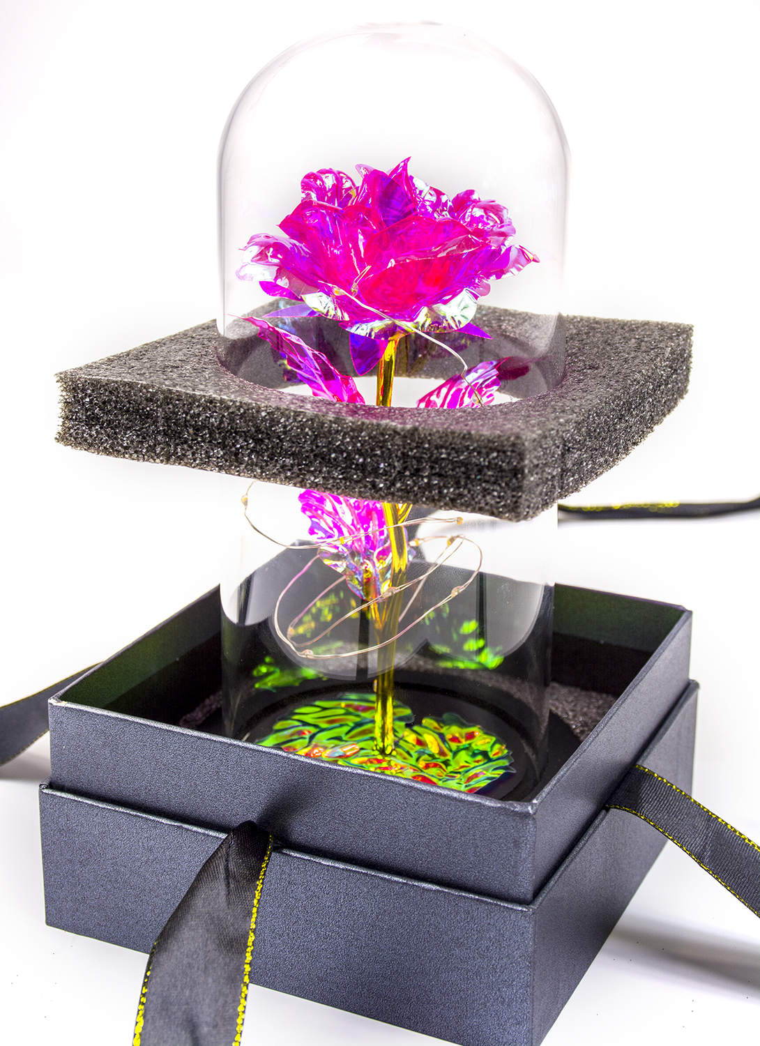 ✨ Róża w szkle została zapakowana w eleganckie, czarne opakowanie, dzięki czemu jest idealna na prezent i od razu gotowa do wręczenia!