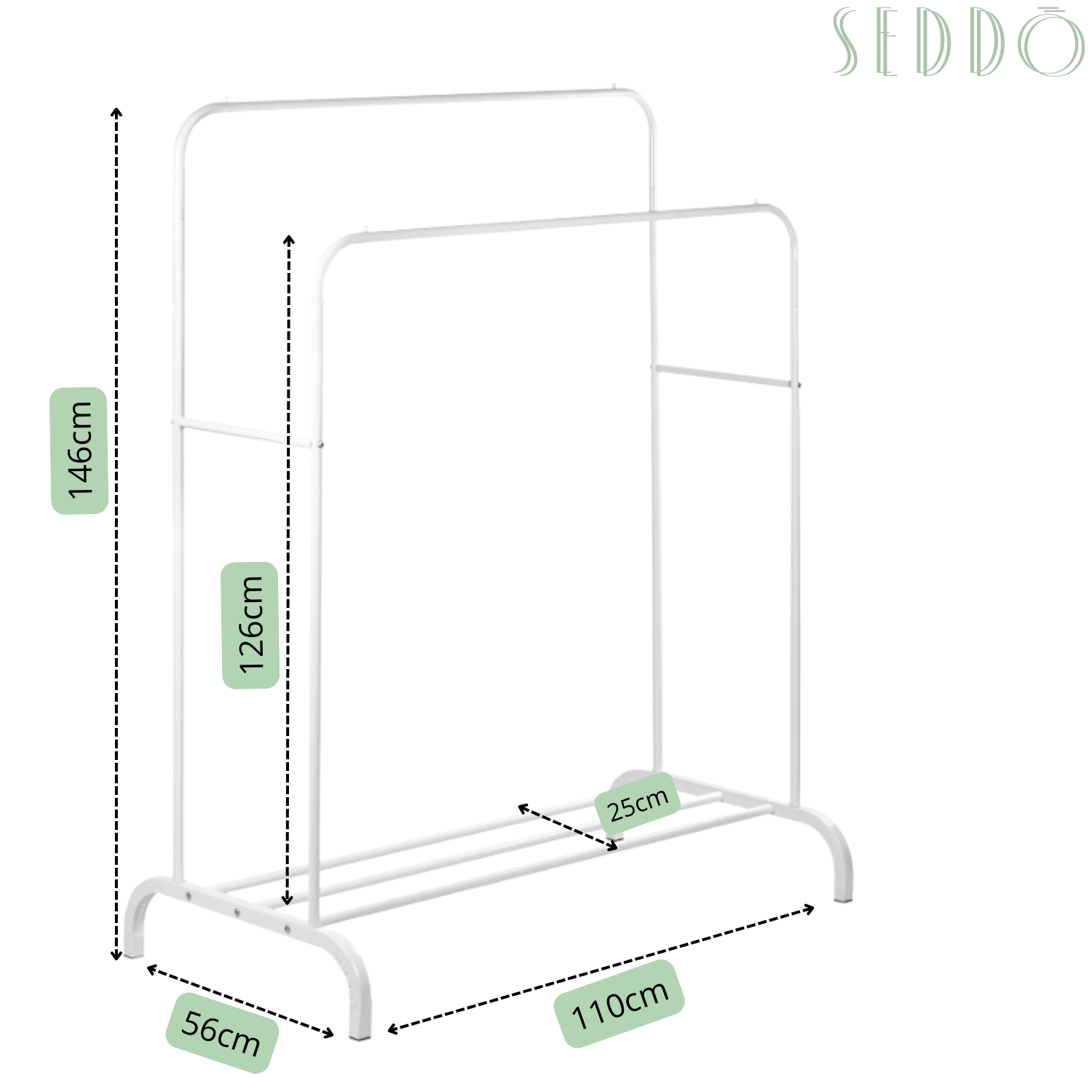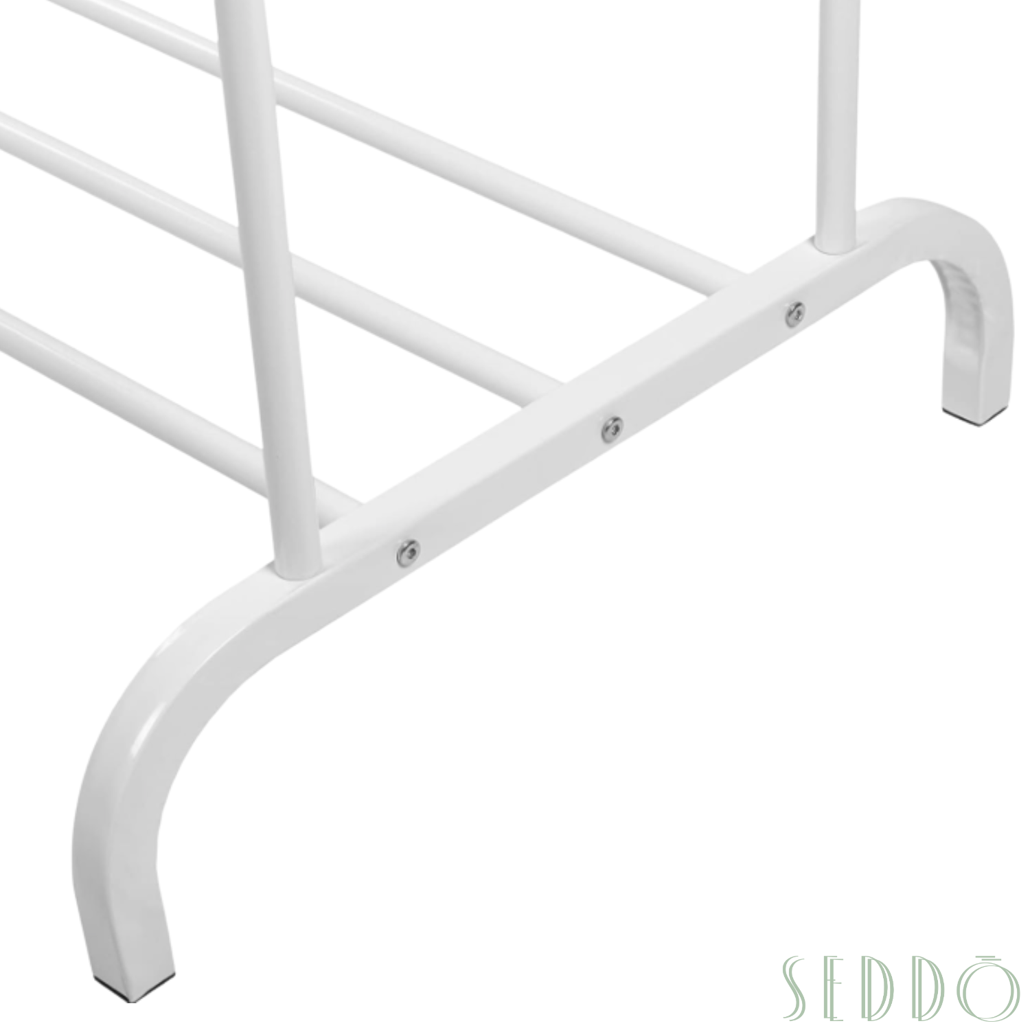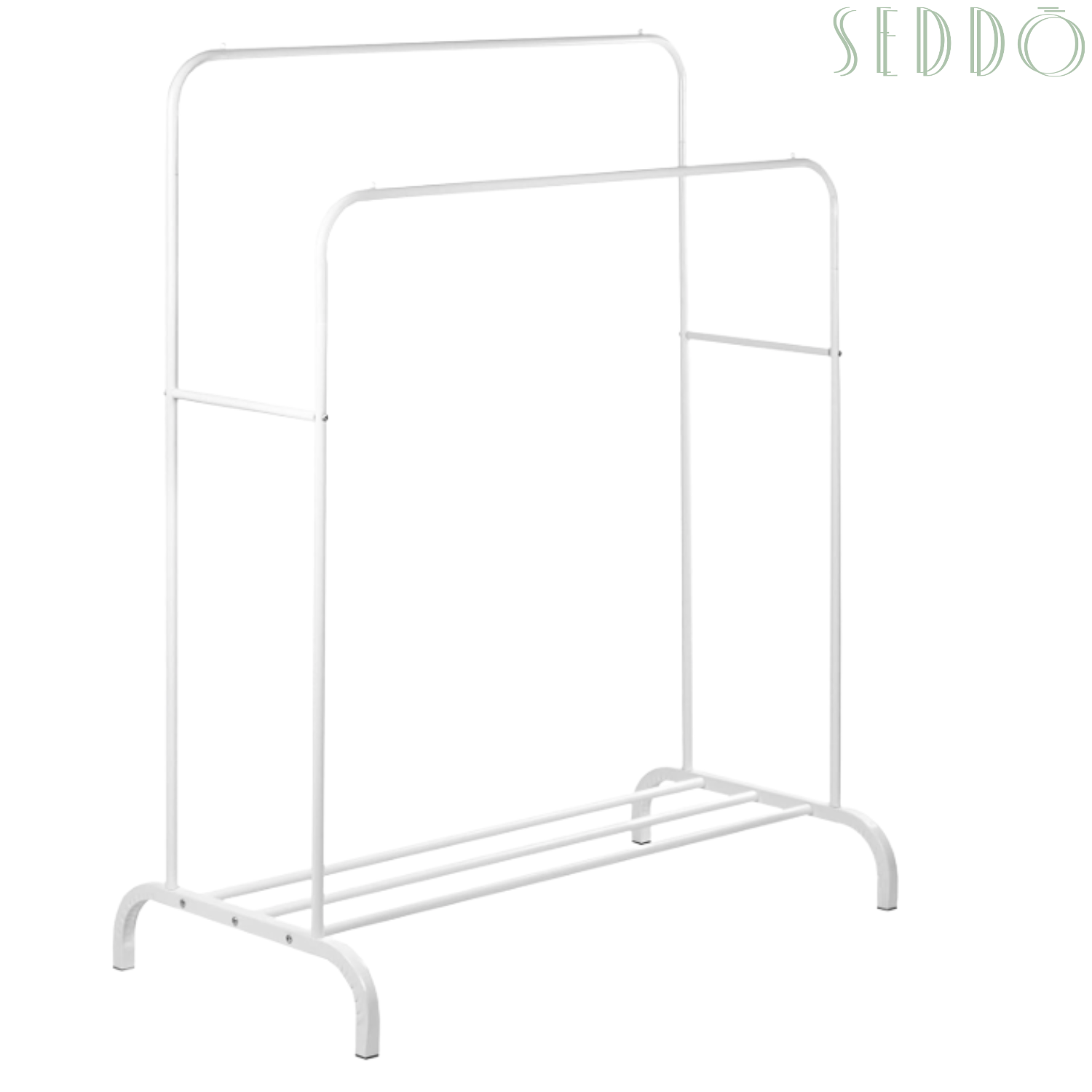 Ten stojący wieszak to połączenie prostoty i nowoczesnej elegancji. Metalowa konstrukcja w białym kolorze pasuje do każdego wnętrza i nie zajmuje dużo miejsca. Idealny do codziennego użytku.