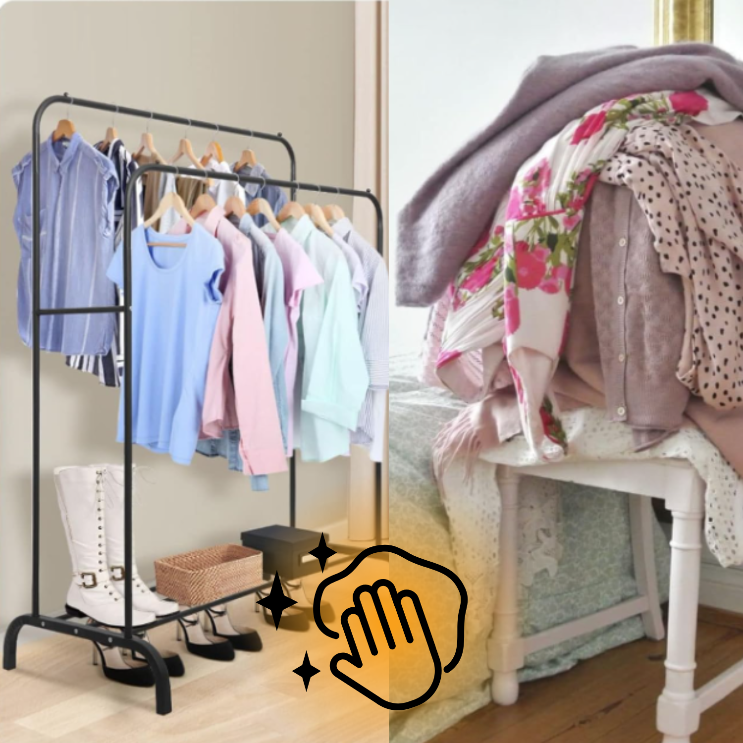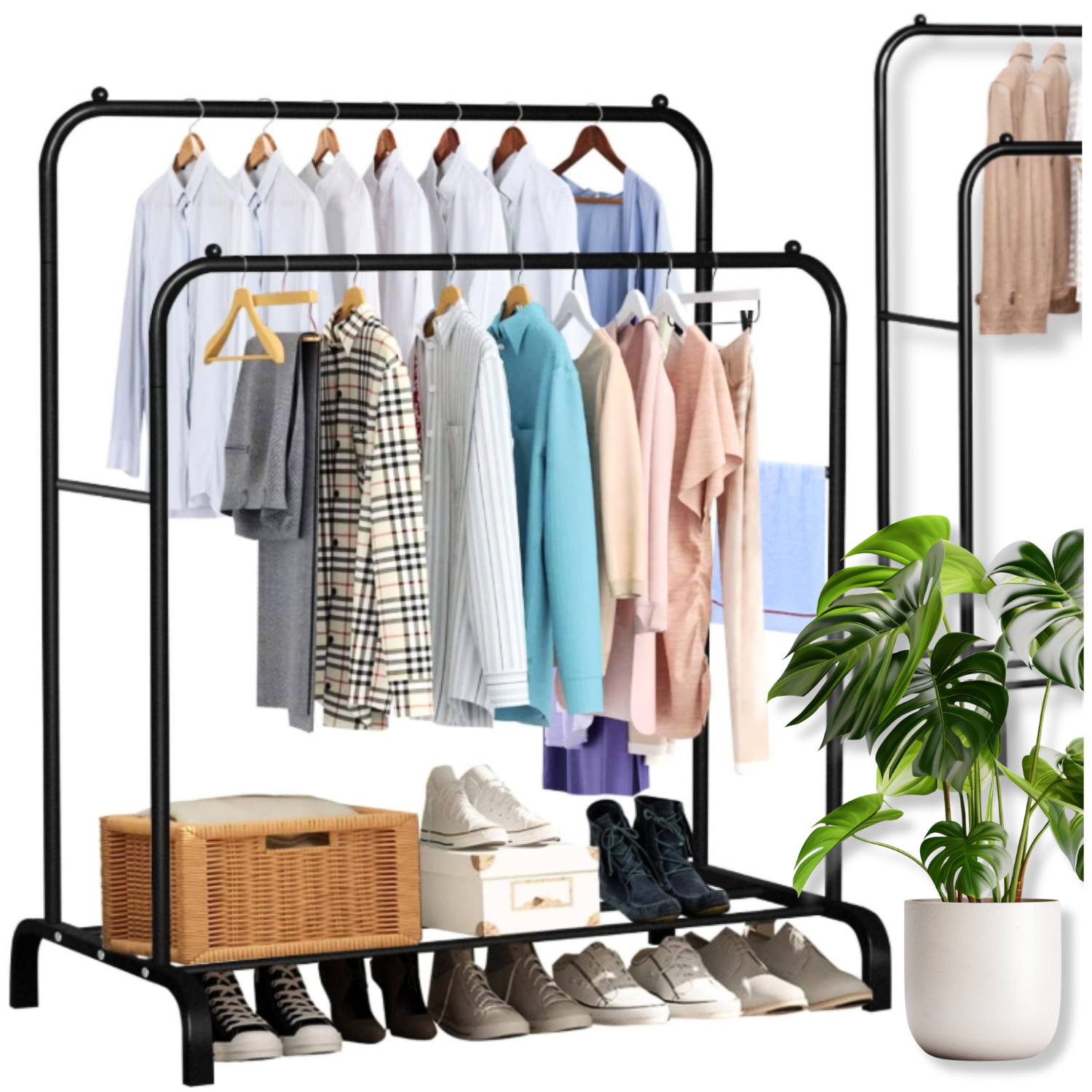 To nie tylko wieszak, ale także funkcjonalna alternatywa dla szafy. Sprawdzi się też w pokoju dziecka, sypialni czy biurze. Stabilny, lekki i łatwy do przestawienia.