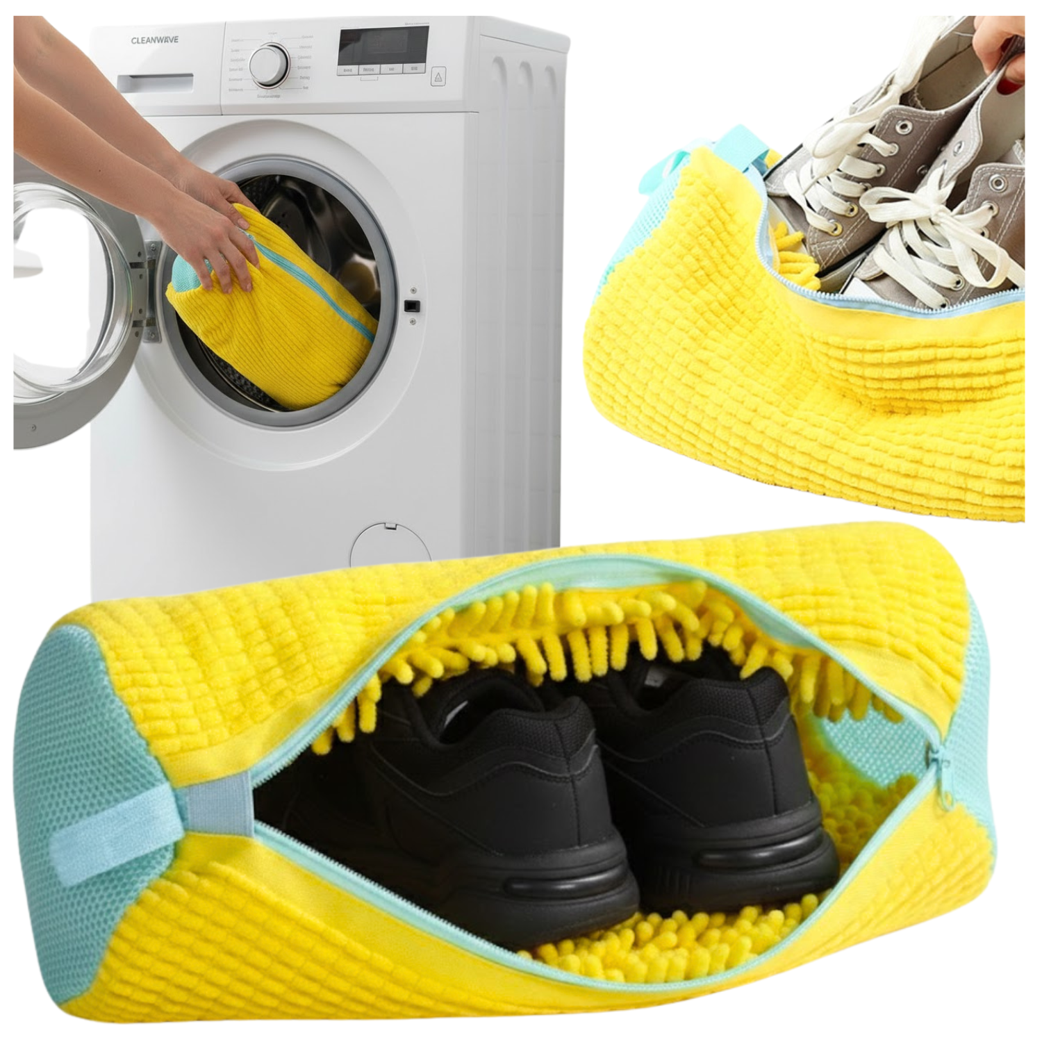 ✅ Umieść buty w środku i włóż do pralki
