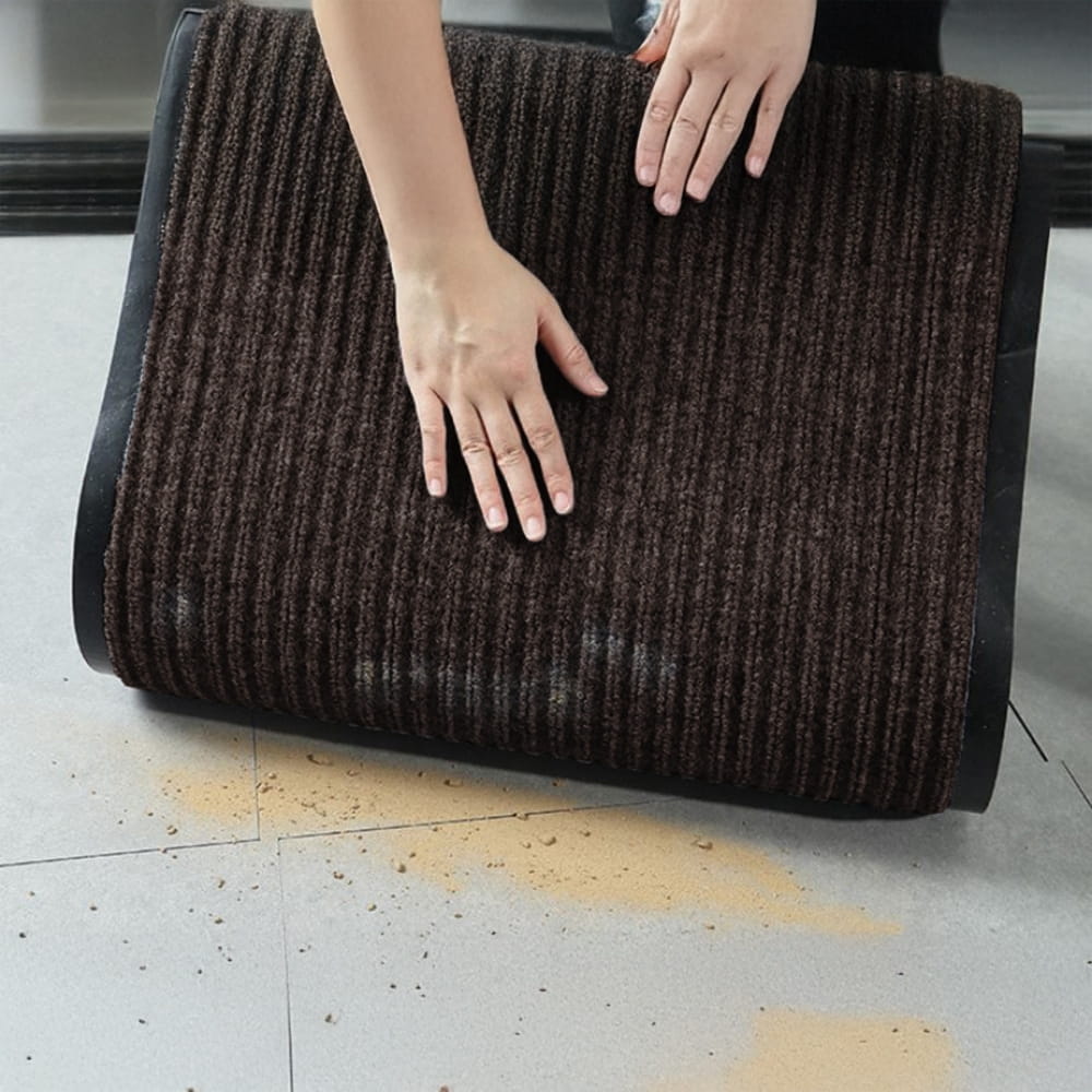 ➡️ Włókna wycieraczki wykonane są z podwójnej przędzy, aby z podeszew Twoich butów usunąć brud i wodę.
