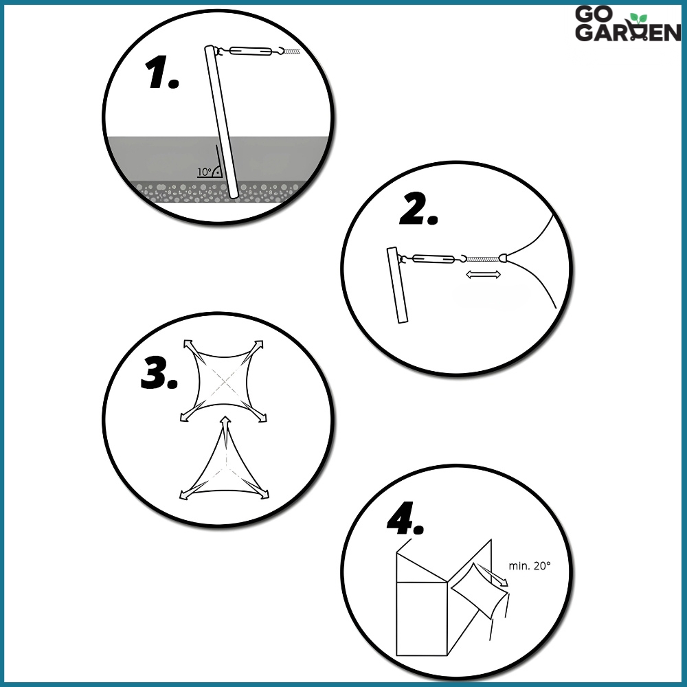 ✔️ Zawsze montuj żagiel prawą stroną do góry – oznacza to, że szwy powinny znajdować się od spodu. To zapewnia skuteczniejszy odpływ wody oraz estetyczny wygląd konstrukcji.