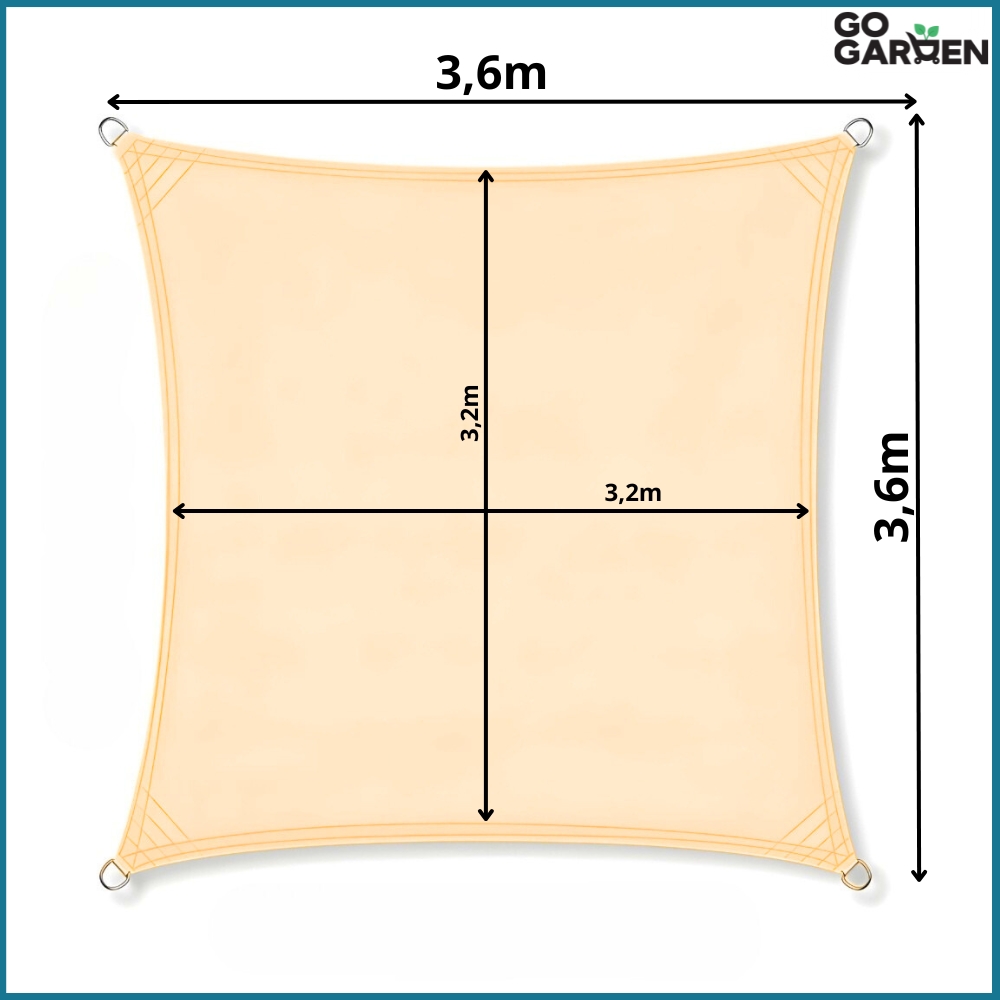 ✴️ ŻAGIEL KWADRAT MARKIZA PRZECIWSŁONECZNA BEŻOWY WODOODPORNA UV 3,6 x 3,6 m ✴️