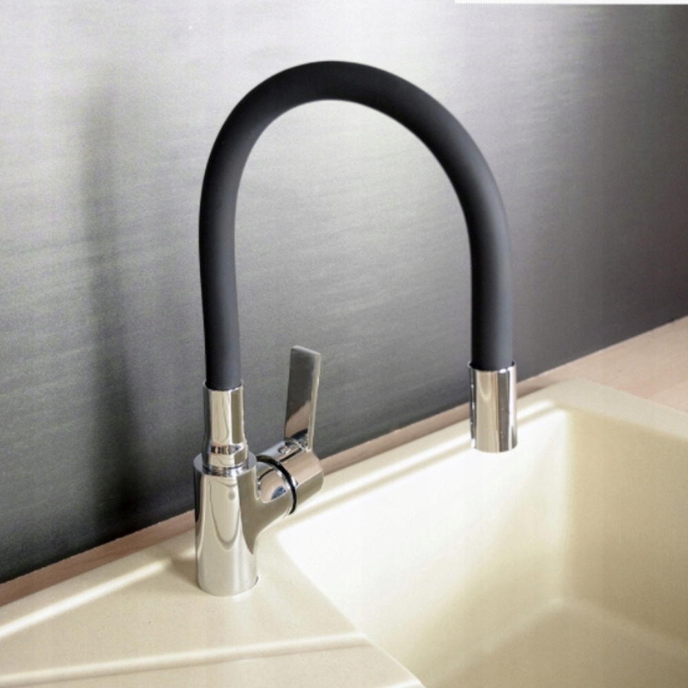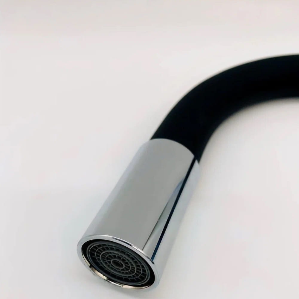 Elastyczny, czarny wąż to nie tylko funkcjonalny element, ale i stylowy dodatek. Dzięki możliwości ustawienia w dowolnej pozycji łatwo skierujesz strumień wody tam, gdzie akurat potrzebujesz, co ułatwia napełnianie większych naczyń czy czyszczenie zlewu. Wąż wykręca się w różne kierunki, zapewniając Ci pełną kontrolę nad pracą w kuchni.