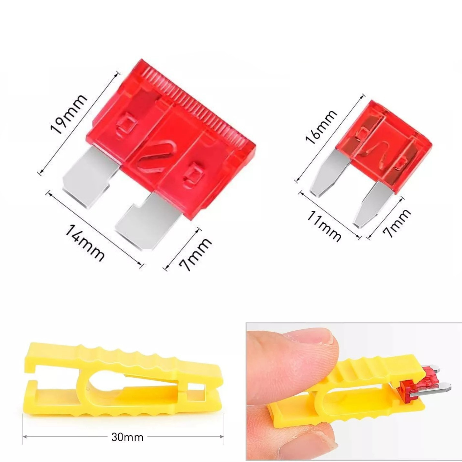 Dzięki czytelnemu kodowaniu kolorystycznemu oraz wyraźnym oznaczeniom wartości amperażu, bezpieczniki są łatwe do odczytania i dobrania do konkretnej potrzeby. Dodatkowo, do zestawu dołączony jest specjalny ściągacz, który ułatwia i przyspiesza wymianę, eliminując ryzyko uszkodzenia elementów.