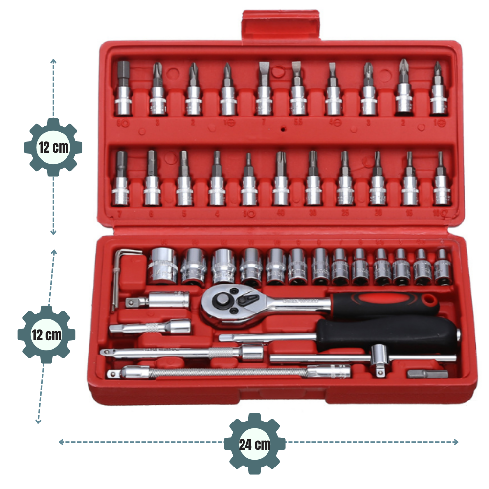 ✅Nasz zestaw zawiera aż 46 różnorodnych i profesjonalnych elementów, które zapewnią Ci wszystkie potrzebne narzędzia w jednym miejscu