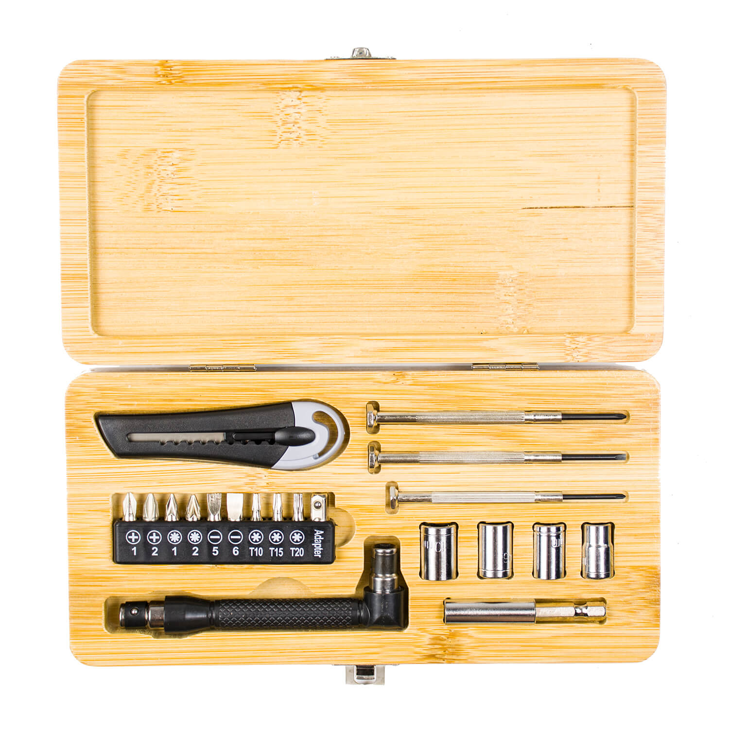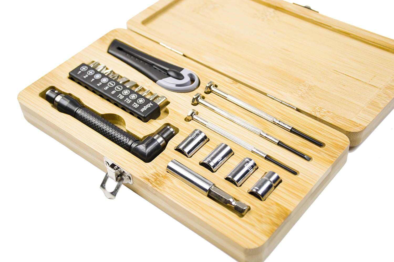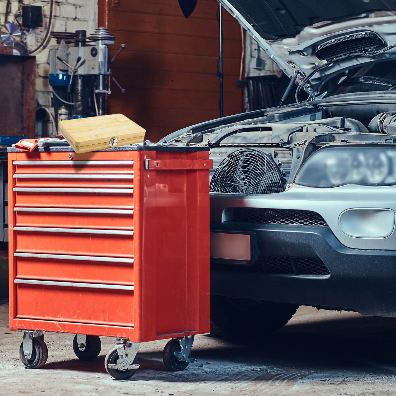 Zestaw idealnie sprawdzi się również jako elegancki element wystroju pokoju lub warsztatu zapalonego majsterkowicza. Jego kompaktowy rozmiar świetnie wpasuję się w każdą półkę, nie zajmując wiele przestrzeni!