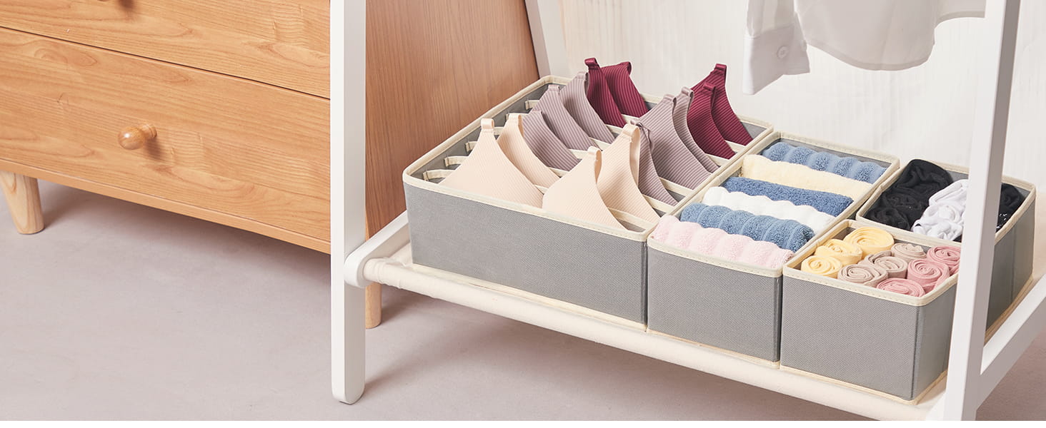 W zestawie znajdziesz aż 4 różne organizery z wieloma komorami pozwalającymi na dokładne posortowanie twoich ubrań: