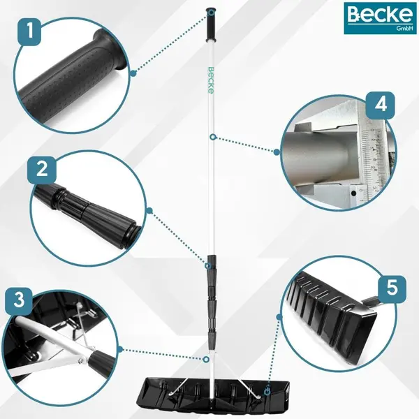 2️⃣ REGULOWANY, TELESKOPOWY DRĄŻEK - poradzi sobie z każdym odśnieżaniem na wysokości. Łamana przy łyżce konstrukcja pozwala na pełne zbieranie śniegu z odsnieżanej powierzchni.