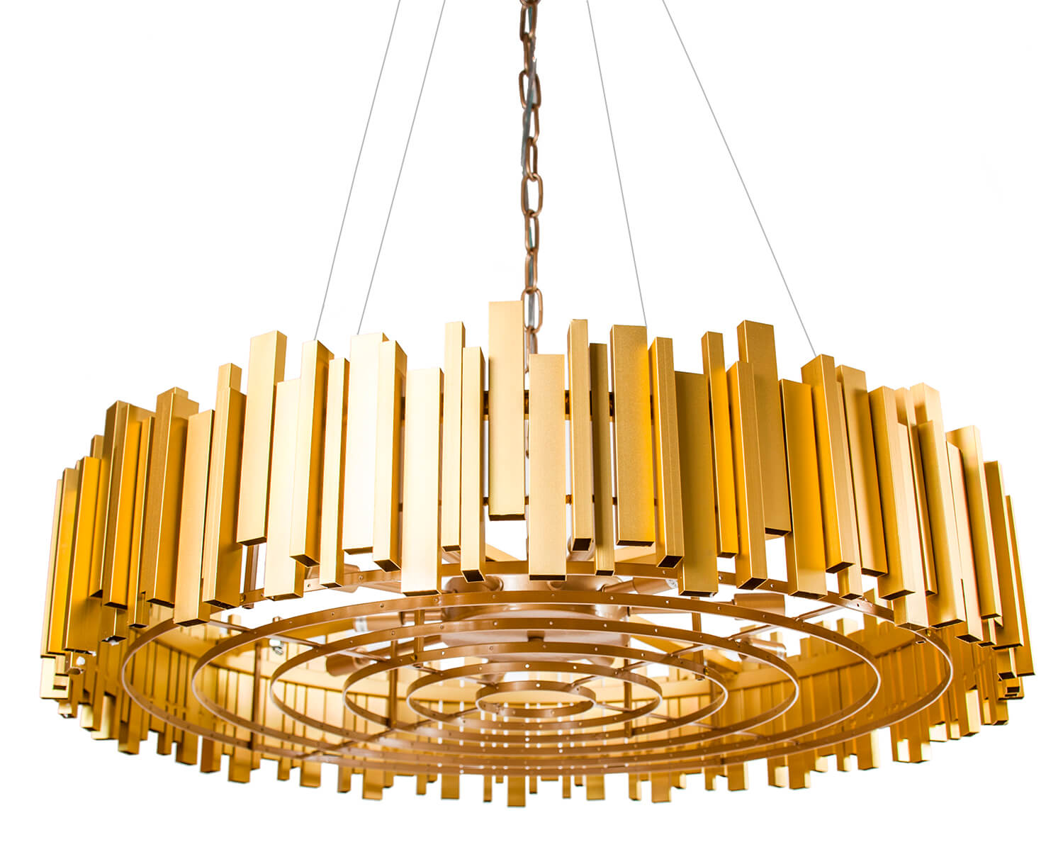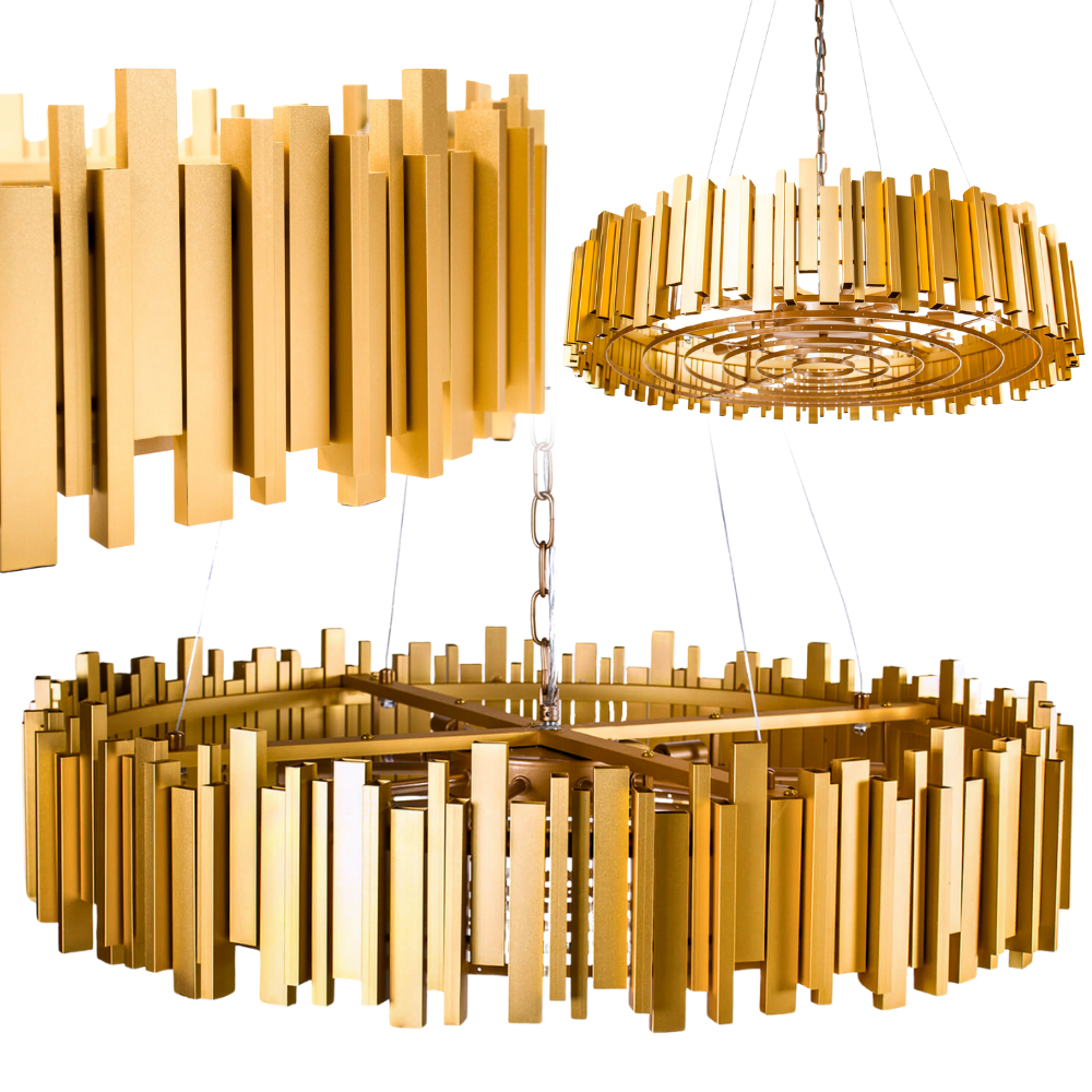 Wykonany z najwyższej jakości materiałów, nasz żyrandol w kolorze ekskluzywnego złota to synonim wyrafinowania.
